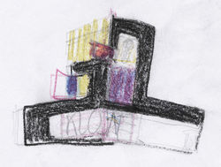 Un piccolo allestimento di un padiglione, offre lo spunto per riflettere sulle possibili relazioni simboliche tra lo sviluppo delle reti informatiche che ci tengono costantemente e diagonalmente in relazione con il “mondo” (comunicazione, immagini) e la realtà stratificata della città. L’irrompere di tali possibilità nella nostra vita, provoca attriti e introduce dei fattori perturbativi che vanno a stratificarsi sullo stato di fatto. L’opposizione e l’idipendenza tra interno e l’esterno esprimono questo rapporto che in fondo è un dialogo possibile. Nessun processo decostruttivo e/o autodistruttivo della forma intacca e disorienta la tenuta strutturale e formale dell’edificio; così come accade realmente nelle nostre città in cui le interiora dei corpi edilizi sono in continua trasformazione. Innesti, senza traumatiche crisi di rigetto. Una bassa torre angolare erosa alla sua base da probabili precedenti modificazioni, rivela timidamente il suo svuotamento e la sua compressa spazialità interna, dove la riconoscibilità dell’azienda e la sorpresa del visitatore, sono ricercati attraverso l’integrazione tra spazio e supporti grafici che annullano i riferimenti di scala.