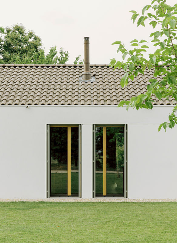 A volte le iniziali condizioni sfavorevoli in cui si svolge il progetto, per la presenza di vincoli o per limitazioni di varia natura, possono diventare favorevoli nel determinare e fissare per necessità elementi di stabilità. Il progetto incorpora elementi costruttivi ordinari come il timpano, le finestre e gli scuri in legno, camini, tegole in cotto, soglie in pietra, con il fine di coniugare un confort abitativo urbano desiderato dalla committenza in un ambito agricolo e paesaggistico con cui si vuole rinsaldare e sottolineare i legami percettivi e concretamente fruitivi.