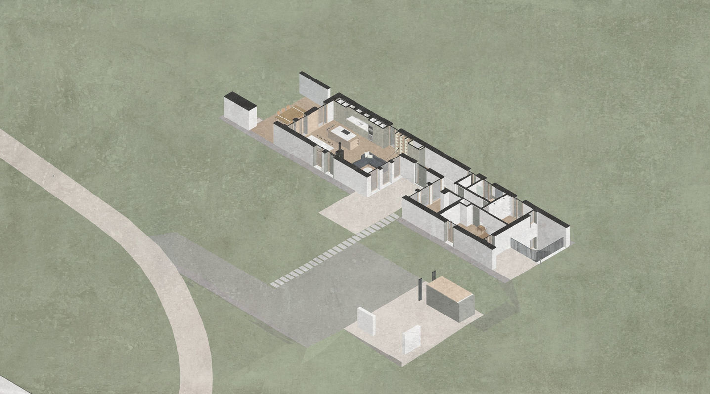 La condizione di relativo isolamento all’interno di una situazione di rarefazione insediativa in un territorio fortemente antropizzato, ha giocato a favore della definizione di una strategia compositiva orientata alla percezione e identificazione cristallina del volume architettonico, senza rinunciare ad una necessaria articolazione e mediazione con lo spazio aperto.